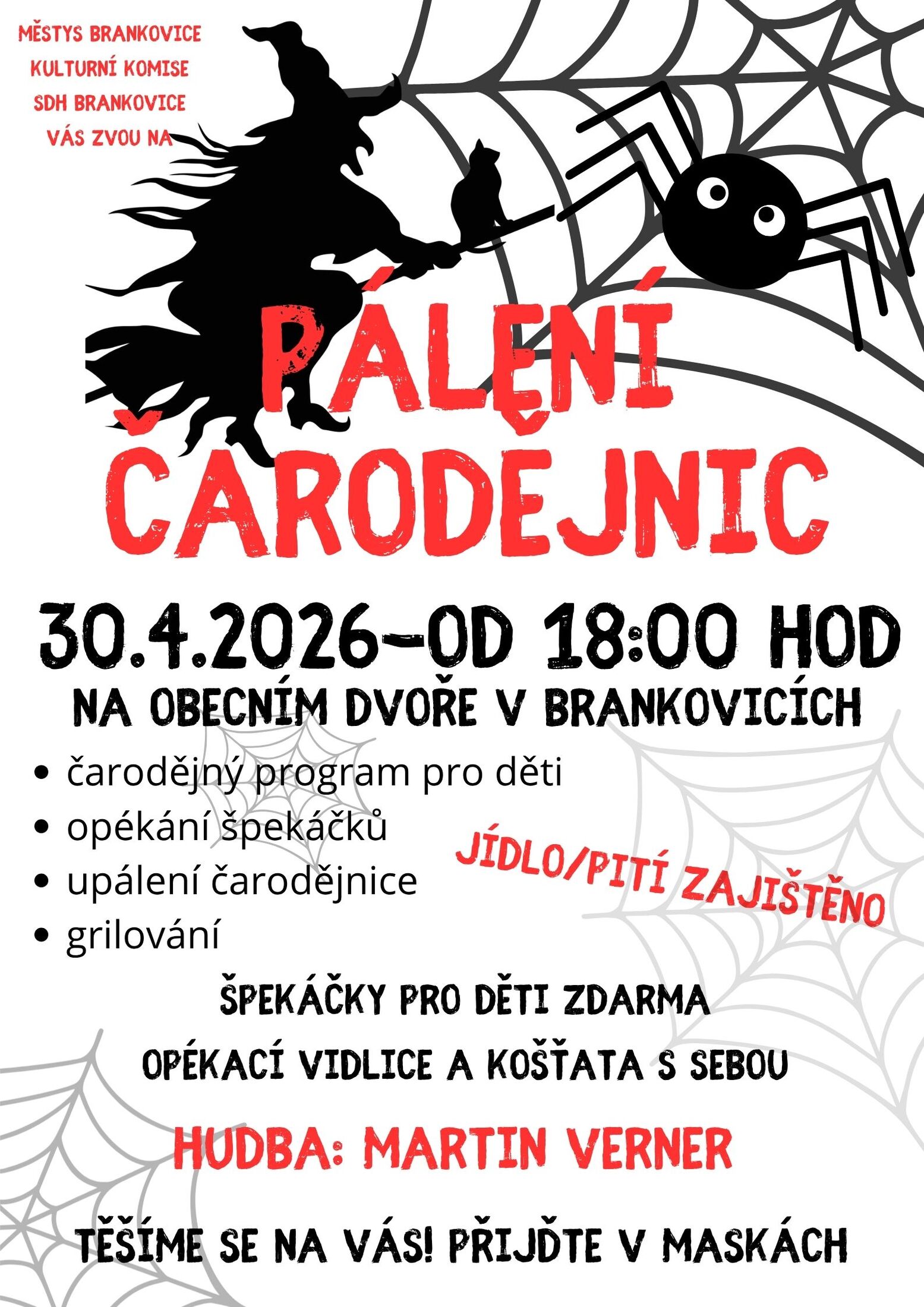 | 30.04.2026 | Pálení čarodějnic | Městys Brankovice | X |