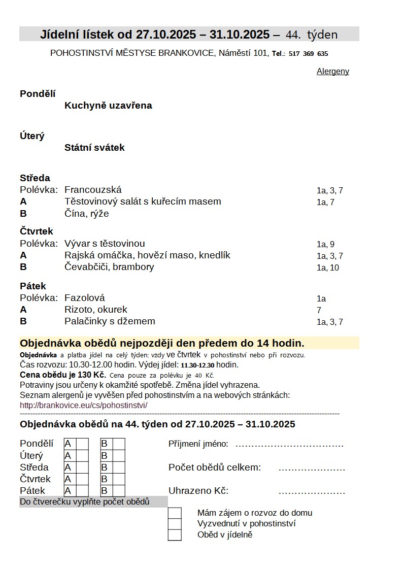 Jídelní lístek od 27.10.-31.10.2025